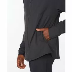 2Xu Aero Jacket Men on tyylikäs juoksutakki miehille, joka on valmistettu vettä hylkivästä kudotusta kankaasta, jossa on ympäristövastuullinen C6 DWR-pintakäsittely, joka kestää sadetta.