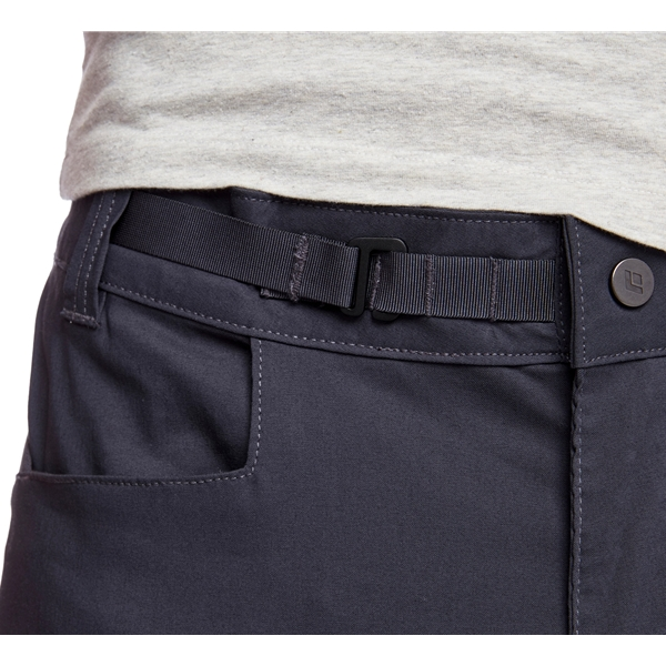 Black Diamond M Anchor Stretch Pants on joustavat kiipeilyhousut miehille. Housut on valmistettu joustavasta, ultrakestävästä materiaalista. Pinnan DWR-käsittely hylkii vettä sateella. Housuissa on lisäksi integroitu, säädettävä vyö, kaksi kiipeilyvaljaiden kanssa yhteensopivaa etutaskua, takatasku ja vetoketjullinen reisitasku.