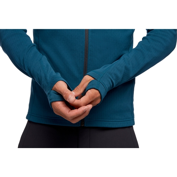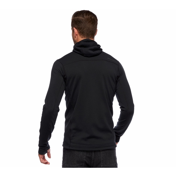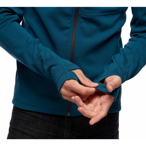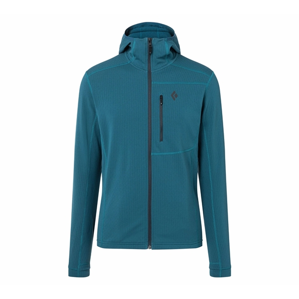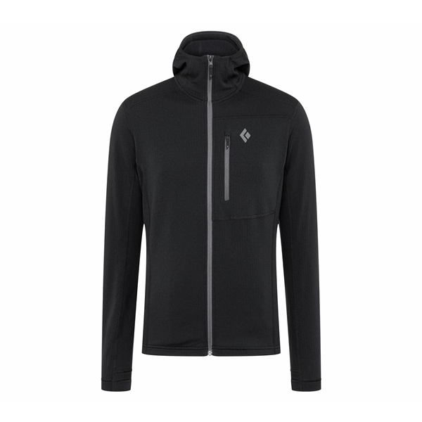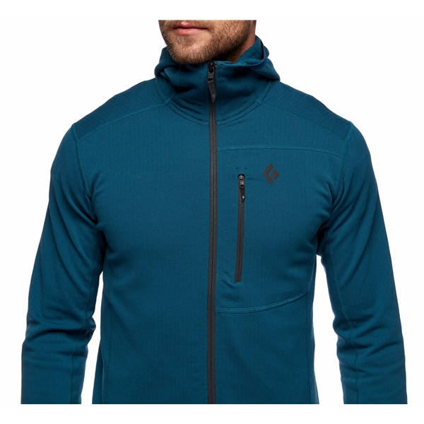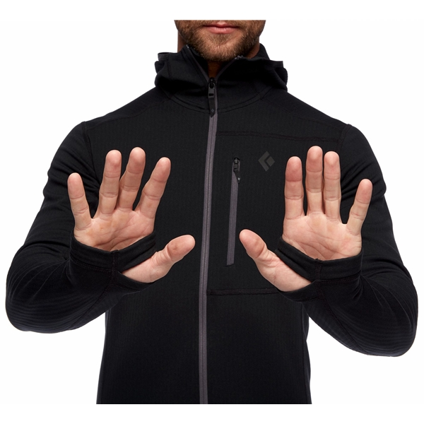 Black Diamond M Coefficient Fleece Hoody on lämmin ja mukava fleecetakki miehille, joka toimii erinomaisesti välikerroksena kaikessa hiihdosta/laskettelusta aina vuorinousuihin. Fleecetakki valmistetaan Polartecin Power Dry -fleecestä ja siinä on ruutukuvio sisäpuolella, joka lisää kosteuden siirtoa ja hengittävyyttä. Kapea istuvuus tekee takista mukavan kuoritakin alla ja se on helppo pakata mukaan laukkuun. Fleecetakissa on lisäksi täyspitkä vetoketju edessä, mikä tekee lämmönsäätelystä helppoa, kypärän kanssa yhteensopiva huppu, rintatasku vetoketjulla ja kevyet stretch-rannekkeet integroiduilla peukalonrei’illä.
