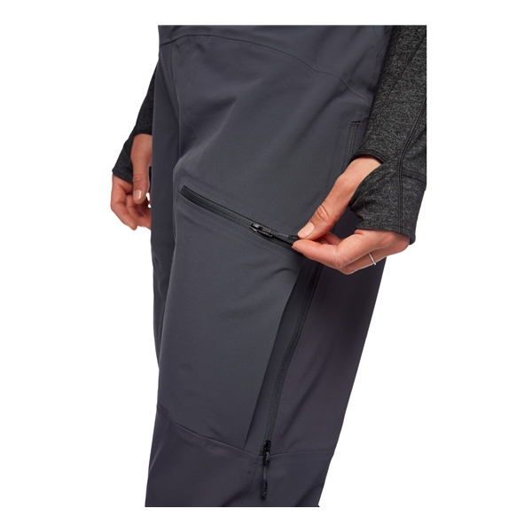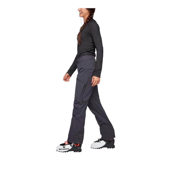 Black Diamond W Dawn Patrol Hybrid Pants on naisten hybridihiihtohousut, jotka on suunniteltu antamaan sinulle juuri sen, mitä tarvitset päivän aikana lumessa – suorituskykyä ja vapautta ylämäkeen ja turvallisuutta alamäkeen. Housut on valmistettu vedenpitävästä ja hengittävästä kankaasta alueilla, joilla suojaus on tärkeintä, ja hengittävästä, joustavasta softshell-materiaalista tärkeimmillä alueilla, jotka ovat usein alttiita ylikuumenemiselle. Sivuilla olevat tuuletusvetoketjut takaavat ylimääräisen lämpötilan säätelyn. Hiihtohousuissa on myös kaksi reisitaskua – joista toinen on tehty lumivyörylähettimelle -, pienempi lantiotasku, integroitu RECCO-heijastin, joustavat hihansuut, lumilukot ja vahvistukset lahkeiden päissä sekä integroitu vyö, jossa on lenkit henkseleille vyötäröllä.