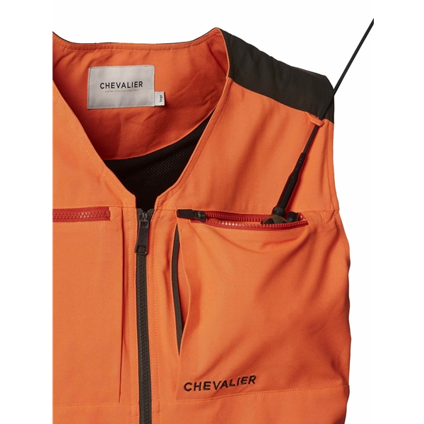 Chase Doghandler Vest -liivi on kehitetty erityisesti koiranohjaajille. Liivi on ommeltu vedenpitävästä polyesteristä ja olkapäillä on Cordura® Ripstop -vahvikkeet. Liivissä on tilaa kaikelle, mitä koiranohjaaja tarvitsee. Kaiken kaikkiaan tässä metsästysliivissä on kahdeksan taskua, esimerkiksi edessä paljetaskut, joissa oikeanpuolimmaisessa gps-tasku, kaksi radiotaskua, kaksi rintataskua ja reilu selkätasku. Koiranohjaajan liivin kokoa voi säätää kummaltakin puolelta vetoketjun avulla. Siten liiviä voi laajentaa kylmällä säällä, kun haluat pukea alle paksun puseron tai takin. Liivissä on edessä lenkeissä kaksi D-rengasta.