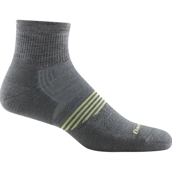 Darn Tough Element Quarter Lightweight With Cushion on hämmästyttävän mukava miesten sukka. Jalkineen yläosassa olevat verkkopaneelit tekevät siitä uskomattoman kevyen ja luovat ilmavan tuntuman. Suorituskykyinen istuvuus tarkoittaa, että se ei liukastu, se pysyy paikallaan ja siksi et saa rakkuloita tai hankausta. Ne ovat niin mukavat, että melkein unohdat käyttäväsi sukkia.