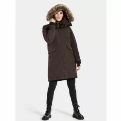 Valmistettu pehmeästä, mattapintaisesta polyesteristä. Erika-takissa on säädettävä, irrotettavalla tekoturkiksella varustettu huppu ja korkea kaulus. Tuulisuojalla varustettu kaksisuuntainen vetoketju, kaksi napillista etutaskua ja kaksi vedenpitävällä vetoketjulla varustettua taskua. Kaksi sisätaskua, joista toisessa on vetoketju. Parkatakin helmaa, vyötäröä, hihansuita ja huppua voidaan säätää tarvittaessa. Ribatut, peukaloreiälliset sisäresorit hihansuissa. Tekoturkiksessa, Didriksons-logoissa ja vetoketjulenkeissä on heijastavat yksityiskohdat. Etutaskun sisäpuolella on heijastinnauha, jota voidaan tarvittaessa käyttää lisäheijastimena.