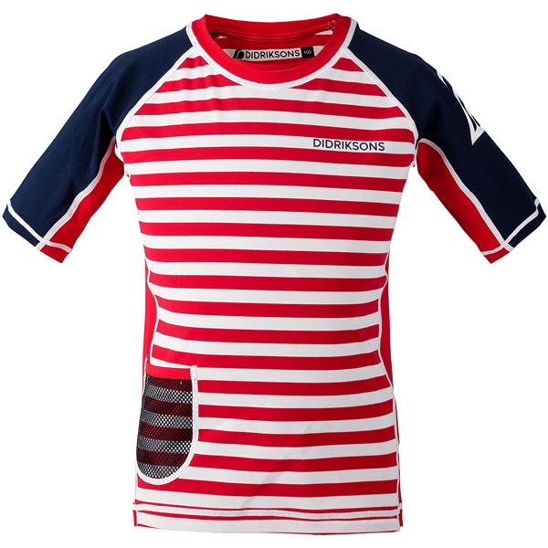 Didriksons Surf Kids SS Uv Top on mukava, lyhythihainen UV-paita lapsille, joka UPF 50+ -arvolla suojaa tehokkaasti herkkää ihoa auringolta ranta- ja vesileikkien aikana. T-paidassa on kätevä verkkotasku, jossa lapset voivat säilyttää pieniä aarteitaan ilman, että sinun tarvitsee tuoda kotiin hiekkaa.
