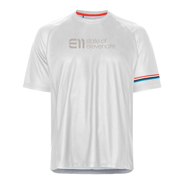 Elevenate M Allmountain Tee on miesten lyhythihainen pyöräilypaita, joka on suunniteltu freeride-pyöräilyyn. Paidan kevyt ja nopeasti kuivuva materiaali auttaa pysymään viileänä vauhdin lisääntyessä ja tuntuu pehmeältä ja mukavalta ihoa vasten. Paidassa on vetoketjullinen takatasku, jossa voi säilyttää tärkeimpiä tavaroita matkan aikana. Rento istuvuus ja raglanhihat tarjoavat poikkeuksellisen liikkumavapauden teknisillä reitillä.