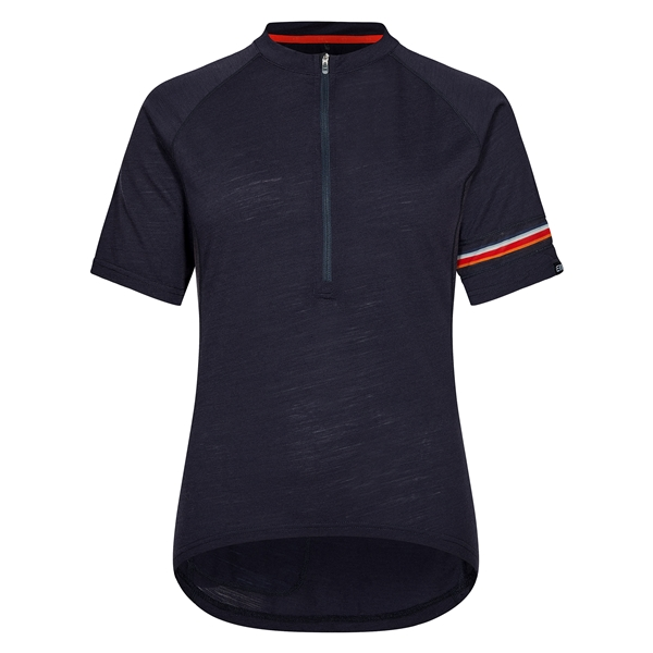 Naisten merinovillasekoitetta oleva pyöräilytoppi, joka on suunniteltu aktiivisiin päiviin reiteillä.
