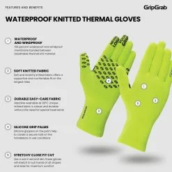 Gripgrabin vedenpitävät neulotut lämpökäsineet ovat vedenpitävät käsineet, jotka takaavat, että sinulla on aina kuivat ja lämpimät kädet kylmissä ja märissä olosuhteissa. Monipuolinen käsine on valmistettu neuloksesta, jossa on vedenpitävä kalvo, joka muodostaa pehmeän, eristävän kerroksen, joka estää tuulta ja vettä jäähdyttämästä sormiasi. Kämmenissä olevat tarttumapainatukset ja hienovaraiset heijastavat yksityiskohdat auttavat sinua säilyttämään hallinnan ja tekevät käsimerkeistäsi näkyviä pimeässä. Loistava hanska epävarmoihin sääolosuhteisiin.