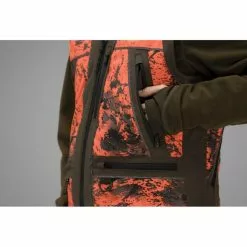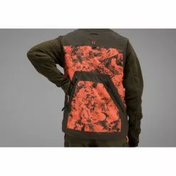 Härkila Wildboar Pro Safety Liivi, miesten mallia on metsästysliivi ja turvaliivi, jossa on AXIS MSP® Blaze -naamiointi ja useita käteviä toimintoja niin koiranohjaajille kuin metsästäjillekin.