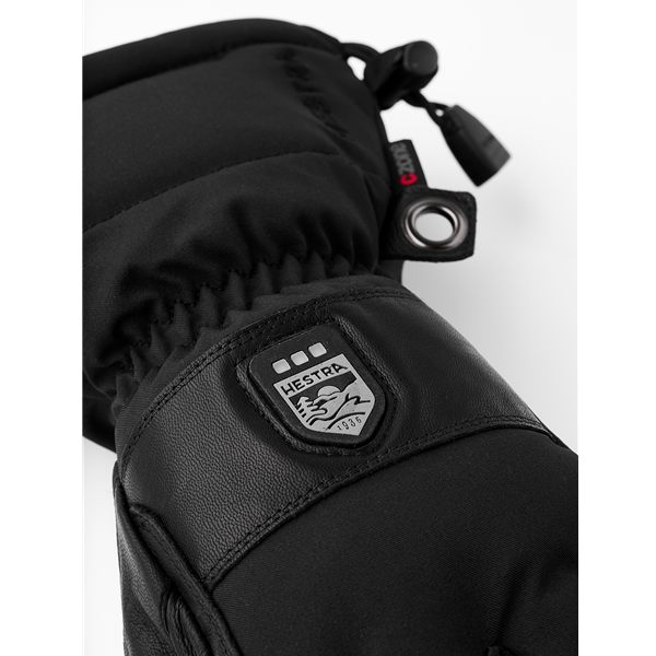 Hestra Power Heater Gauntlet – 5 Finger ovat vedenpitävät ja tilavat käsineet sisäänrakennetulla lämpöjärjestelmällä – täydelliset sinulle, jonka kädet palelevat helposti! Käsineiden päälipuoli on Hestran hengittävää ja tuulen- ja vedenpitävää Flextron Softshell-materiaalia ja kämmenpuoli kyllästettyä vuohennahkaa. Lämpöjärjestelmän silmukat sijaitsevat pääliosassa sormien ja peukalon kohdalla ja lämpöä säädetään keskelle käsineitä sijoitetusta logosta. Kolme eri lämmönsäätövaihtoehtoa, sään ja lämpötilan mukaan. Järjestelmän paristot ovat ladattavat ja vaihdettavat, tuotteessa on mukana USB-laturi. Lisäksi käsineissä on myös C-Zone-kalvo, G-Loft-polyesterieristys, lumilukko ja ”handcuffs” -kiinnityslenkit.