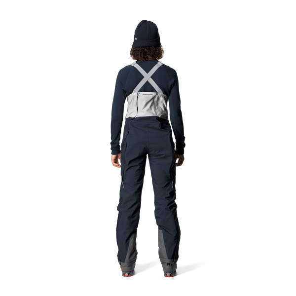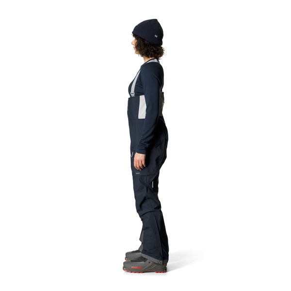 Houdini W’s Rollercoaster Bib Pants ovat naisten täysin varustellut kuorihousut olkaimilla, jotka on kehitetty lasketteluun ja topptur-hiihtoretkiin, mutta jotka suoriutuvat erityisen hyvin syvinä puuterilumipäivinä. Kuorihousut on valmistettu vedenpitävästä, hengittävästä ja hiljaisesta Loop Hardshell™ -materiaalista teipatuilla saumoilla. Housut on tehty yhdestä ainoasta materiaalikappaleesta. Suunnittelun aikana Houdini piirsi kaavat ihmisestä, joka teki kiipeilyssä ja hiihdossa tehtäviä liikkeitä, joten lopputuloksena on housut, jotka antavat täydellisen liikkumavapauden. Hyvin istuva korkea vyötärö säädettävillä olkaimilla pitää sinut lämpimänä ja kuivana vaikka seisoisit päälläsi syvässä lumessa, ja tarjoaa lisäksi optimaalista istuvuutta. Tuuletusaukot sivuilla ovat yhteensopivat valjaisiin, ja sivutaskut on muotoiltu siten, että niissä on tilaa lumivyörysondille. Lahkeissa on Schoeller®-vahvistus ja lumilukko, halkiokiila jolla voidaan säätää leveyttä sopimaan eri monoille sekä piilotettu metallikoukku kenkien tai monojen kiinnittämiseen.