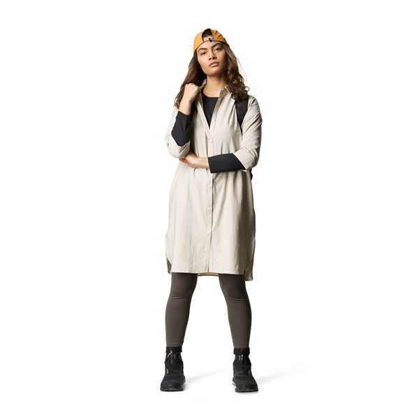Houdini W’s Route Shirt -mekko on tyylikäs ja mukava mekko, jonka minimaalisen muotoilunsa ja pehmeän materiaalinsa ansiosta voit käyttää sitä päivittäin oletpa sitten menossa rannalle, festivaaleille, matkalle, kävelemään tai retkelle.Mekko on valmistettu ohuesta, mutta kestävästä materiaalista, joka kuivuu nopeasti ja jolla on luonnollinen aurinkosuoja UPF 50+ ilman kemikaaleja. Löysä ja joustava istuvuus antaa mekolle hyvän ilmavirran, minkä ansiosta vaate jäähtyy nopeasti lämpimällä säällä ja joka yhdessä nopeasti kuivuvan kankaan kanssa tekee mekosta täydellisen laittaa kostean uimapuvun päälle. Mekko on myös täydellinen matkakumppani, koska se on helppo pakata omaan taskuunsa ja vie erittäin vähän tilaa laukussasi.