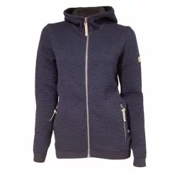 Naisten huppari, jossa on vetoketju edessä ja vetoketjullinen sivutasku. Vaate on neulottu tätä kautta varten täysin uudella 3D-neuloksella, jossa neulotut ilmataskut antavat sekä muotoilua että toimivuutta. Materiaali on villan ja TENCEL®:n sekoitus, jossa villaa on uloimpana kerroksena ja TENCEL®:ää on vartalon suuntaan. TENCEL®-langan eri värit antavat siistin muotoiluvaikutelman. Hihat ja vartalon alareunassa on kylkineulottu mansetti. Jacron-logo on sijoitettu vasemman hihan yläosaan.