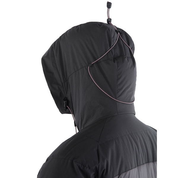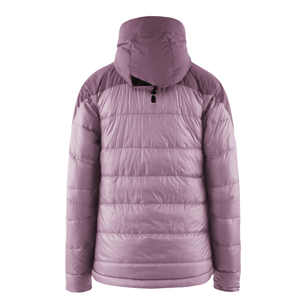 Klättermusen Atle 2.0 Jacket on tyylikäs untuvatakki naisille – täydellinen otettavaksi mukaan kaikkialle, koska se on kevyt ja niin kokoon puristuva, että se voidaan pakata omaan pakkaustaskuunsa. Puristuvuus tekee siitä myös täydellisen istuvan eristevaatteena kuoritakin alla sääolosuhteiden niin vaatiessa, kun tarvitset esimerkiksi sekä lämpöä ja sateensuojaa. Myös takin hartiaosat on vahvistettu antamaan tietyn vedenpitävyyden. Takki on valmistettu laatikkomaisella rakenteella ilman läpikulkevia saumoja, mikä tarkoittaa, että vältät vedon takissa, joka voisi muuten jäähdyttää vartalon korkean fillpowerin untuvaeristeestä huolimatta. Lisäksi siinä on untuvilla täytetty, vahvistettu tuulisuoja, jossa on napit vinon vetoketjun edessä parantamassa lämmön säilyvyyttä sekä lisäämässä ilmanvaihtomahdollisuuksia. Takin huppu on myös suunniteltu antamaan päähän ylimääräistä lämpöä – osittain sen tiiviin leikkauksen ansiosta, joka antaa tiukan istuvuuden pään ympärille, ja osittain hupun untuvatäytteen ansiosta. Huppu on myös helposti säädettävissä kolmeen asentoon myös käsineet kädessä, jotta se voi seurata pään liikkeitä peittämättä näkymää. Takin taskuissa on tuulensuojat taskuaukkojen päällä estämässä lumen ja jään pääsyä niihin, ja sisällä on fleecevuori, joka toimii tuulensuojana ja auttaa lämmittämään käsiä. Muita käytännöllisiä ominaisuuksia ovat taaksepäin siirrettävät ranneresorit, resorit sekä hihoissa että vyötäröllä sekä pidennetty takaosa, joka suojaa ristiselkää myös silloin, kun kumarrat eteenpäin.