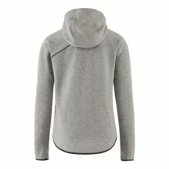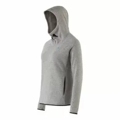 Tyylikäs, hupullinen naisten pusero villan ja silkin materiaalisekoituksesta – erityisen sopiva välikerrokseksi erittäin intensiivisiin aktiviteetteihin.