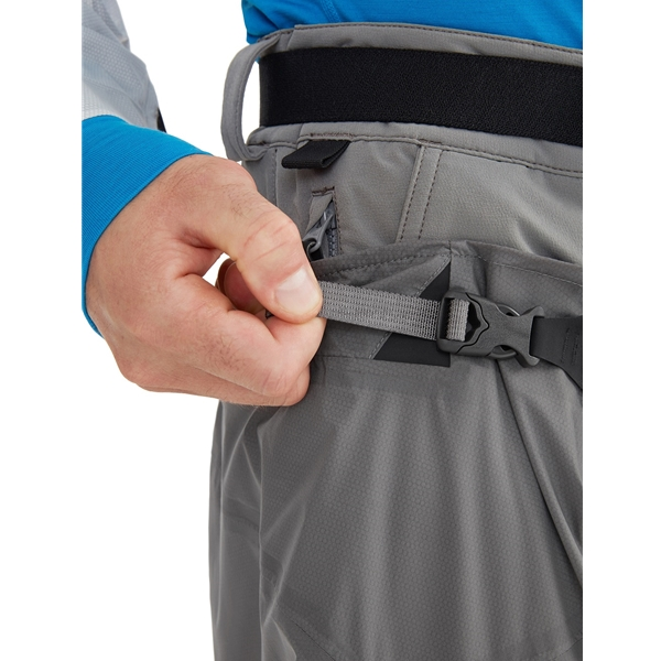 Kun tarvitset suojaa, Fjorgyn Knickers on juuri se vaate, jota tarvitset. Kevyt kangas, vedenpitävyys, pakkautuvuus ja nerokas ratkaisu alla olevien vaatteiden säätämiseen ja käyttämiseen tekevät näistä housuista suosikit kaikenlaisissa tilanteissa. Vetoketjujen puuttumisen ja helpon säädettävyyden ansiosta housut on helppo pakata ja käyttää, ja leveän leikkauksen ansiosta sinun ei tarvitse riisua kenkiäsi housujen pukemiseksi. Vaatteessa on myös neopreeni selässä, joka takaa paremman istuvuuden ja hieman venyvyyttä, ja vetoketjullisen takataskun avulla housut voi pakata. Molemmilla sivuilla on myös aukot, jotta pääset käsiksi housujen sisätaskuihin, ja sekä reidet että polvet on vahvistettu Duracoatilla. Kaiken tämän lisäksi housuissa on heijastavat yksityiskohdat, säädettävät lahkeensuut ja saksalaisille puusepänhousuille tyypillinen vyötäröaukko.