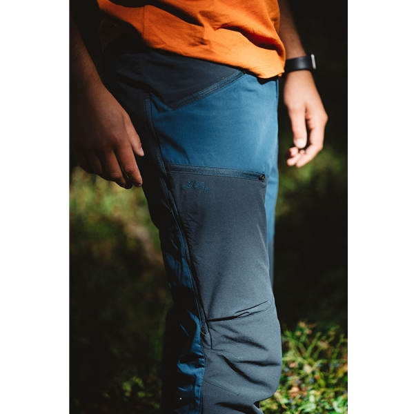 Päämateriaali:Lundhags Polyester Cotton (LPC) 155 RM/OC (65% polyesteri – kierrätetty, 35% puuvilla – luomu). Stretch: Lundhags Nylon (LN-stretch) 177RM (88% polyamidi – kierrätetty, 12% polyuretaani). Tuote sisältää TOKO DWR:n. 100% fluorihiilivapaa.