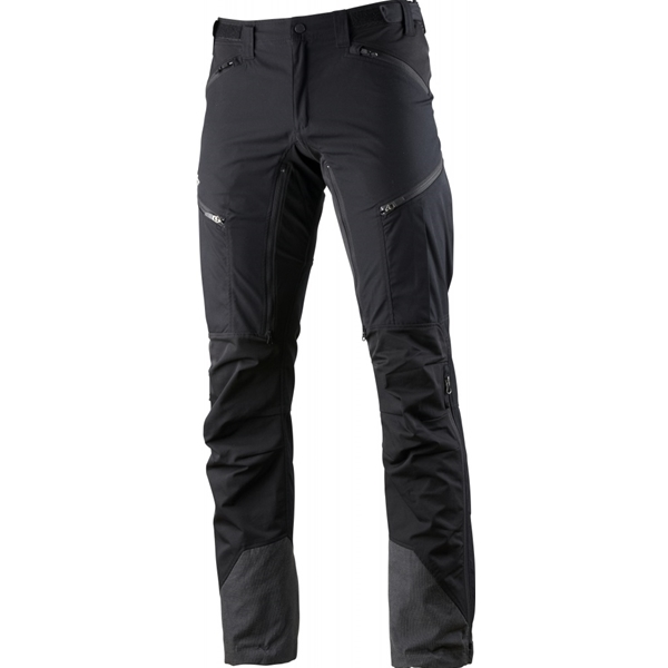 Muita käytännöllisiä yksityiskohtia ovat vyötärön säätö, vetoketjulliset käsi- ja reisitaskut, esitaivutetut polvet, saumaton lahkeensuun sisäpuoli, säädettävä lahkeensuu irrotettavalla saapaskoukulla, ilmanvaihto käsitaskuissa, vetoketjut ja verkkokangas reisien sisäpuolella sekä kaksisuuntainen vetoketju säärissä lihasten turpoamisen (pump effect) varalta.