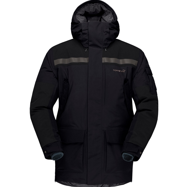 Norröna Norrøna Gore-Tex Down750 Parka Unisex on klassinen untuvaparkatakki. Kyseessä on Norrönan lämpimin ja toiminnallisin parkatakki, joka selviää koko planeetan kylmimmistä olosuhteista. Tämä vankka takki tarjoaa tinkimättömiä toimintoja, jotka antavat ylivoimaisen suojan ääretöntä kylmyyttä ja armotonta säätä vastaan. Takki on valmistettu kierrätetystä 70D Gore-Tex -nylonkankaasta kierrätetyllä 200D-nylonvahvistuksella ja korkealaatuisella 750-untuvalla. Se selviää kaikissa olosuhteissa. Takki on läpäissyt Gore-Texin StormPlus-testin. Takki on suunniteltu ympäristöihin, joiden lämpötila on alle -30°C ja siinä on kaikki toiminnot, joita tarvitaan retkillä. Takissa on yhteensä yhdeksän taskua: kuusi ulkopuolista ja kolme sisäpuolista. Vetoketjullisia rintataskuja on helppo käsitellä käsineet kädessä, minkä lisäksi takissa on kaksi käsienlämmittelytaskua lumivarmalla kirjekuoriläpällä, kaksi alempaa taskua läpillä ja vetoketjuilla sekä hihatasku tarrakiinnityksellä. Kaksinkertainen etuosa takaa täydellisen tuulen- ja vedenpitävyyden. Takin sisäpuolella on vetoketjullinen verkkotasku, suurempi verkkotasku sekä kännykkätasku. Sertifioidussa untuvatäytteessä on lokerorakenne ja kuori on teipattu. Takissa on ensisijaisesti untuvaeristys, mutta siitä löytyy myös synteettistä eristystä strategisissa paikoissa, kuten hartiat, alaselkä ja takamus. Takki tarjoaa tehokkaan eristyksen alueille, joissa täyte usein painuu kasaan, ja parantaa näin ollen lämmittäviä ominaisuuksia. Takin sisäpuolinen lumilukko/tuuliläppä pitää lämmitetyn ilman takin sisäpuolella. Vyötärö on säädettävä ja alempien taskujen kautta pääset helposti käsiksi nauhoihin. Suuren liikkuvuuden ja mukavuuden varmistamiseksi takissa on myös kätevät vetoketjut sivuilla. Muita ominaisuuksia ovat heijastinpaneeli rinnassa ja selässä parantamassa näkyvyyttä, tarranauhoilla säädettävät resorit, jotka on optimoitu mahdollistamaan niiden täydellinen sulkeminen sekä myrskyhuppu joustavalla reunalla. Takin tyyli on unisex ja se perustuu miesten kokoihin.