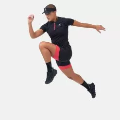 Odlo Axalp Trail S/S 1/2 Zip T-Shirt Woman on Odlon teknisin ja monipuolisin naisten polkujuoksu T-paita. Tämä t-paita on valmistettu kevyimmästä kankaasta ja hengittävyydeltään erittäin hyvä, ja se on tehty auttamaan sinua suoriutumaan parhaalla mahdollisella tavalla vaelluksilla. Jotta juoksun aikana olisi entistäkin parempi ilmanvaihto, se on varustettu Odlon Chill tec -materiaalilla edessä ja sivuilla ja täydennetty kevyellä joustavalla verkkomateriaalilla takana.