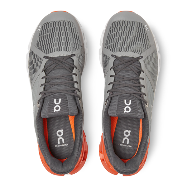 On Cloudflyer Men on täysin vaimennettu ja tukeva miesten juoksukenkä, joka antaa yllättävän pehmeät laskeutumiset ja räjähtävät startit eliittiurheilijoille, aloittelijoille ja kaikille siltä väliltä. Tämä juoksukenkä on valmistettu 12 suuremmalla Cloud-tyynyllä antamaan lisävakautta ja myötäilevän siirtymisen laskeutumisesta ponnistukseen, sekä Zero-Gravity-vaahdolla, mikä lisää vaimennusta. Cloud-tyynyt on konfiguroitu vähentämään sisäänpäin kiertymistä laskeutumisen yhteydessä, kun taas Speedboard™ mahdollistaa vakaan ja luonnollisen siirtymisen joka askeleella. V-muotoinen kantakappi yhdistettynä memory-vaahtoon antaa kovan ja vakaan kantapäätunnun, kun taas ja dual-density-kengänsuu tarjoaa uskomatonta mukavuutta, joka on johdonmukaista koko juoksun ajan. Lisäksi plyysi-iltti ja nyöritysjärjestelmä antavat ihanteellisen yhdistelmän joustavuutta ja turvallisuutta samalla, kun se jakaa paineen tasaisesti.