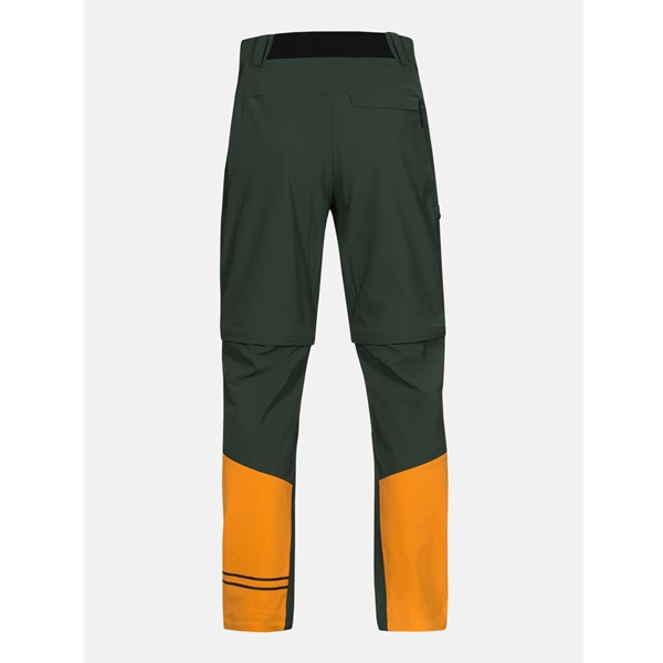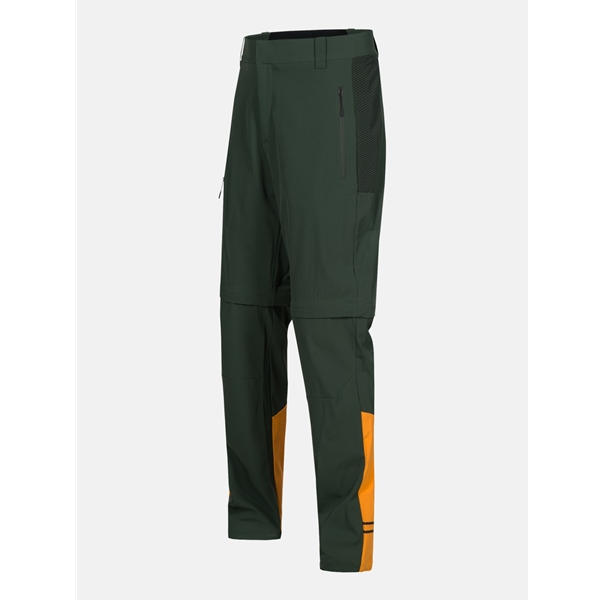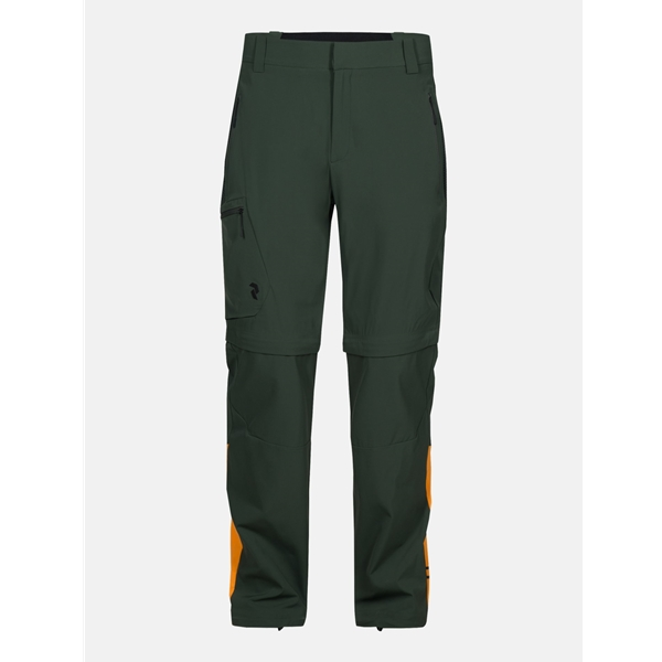 Peak Performance M Vislight Zip Off Pant on tyylikkäät, viimeisintä tekniikkaa edustavat miesten irrotettavat housut, jotka on suunniteltu erityisesti vaellusseikkailuihin. Housut on valmistettu kevyestä, teknisestä, DWR-käsitellystä kankaasta, jolla on hyvä hengittävyys, venyvyys ja nopeasti kuivuvat ominaisuudet, ja niissä on oranssit heijastinpaneelit, jotka näkyvät hyvin pimeässä. Polvien ympärillä olevien vetoketjujen ansiosta housut on helppo muuttaa shortseiksi, kun lämpötila nousee. Housuissa on myös fiksuja yksityiskohtia, kuten vetoketjulliset taskut, jalkahihnat, laminoidut vyölenkit, säädettävät lahkeensuut ja joustava vyötärönauha takana.