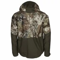 Pinewood Furudal Tracking Camou Jacket on kevyt, tuulenpitävä miesten metsästystakki, joka sopii aktiiviseen metsästykseen leudommissa ilmastoissa ja liikkeellä oleville koiranohjaajille. Takki on valmistettu hiljaisesta ja joustavasta kankaasta, jossa on korkea hengittävyys, vahattu ja vettähylkivä viimeistely sekä virallinen True Timber Camo -kuvio, ja siinä on verkkovuori, joka edistää hyvää ilmankiertoa. Takissa on myös kalvovahvikkeet kyynärpäistä alaspäin lisäkestävyyden takaamiseksi, radiotaskut molemmilla sivuilla ja irrotettava huppu. Takki on myös hyttyssuojattu ja UV-suojattu (UV50+).