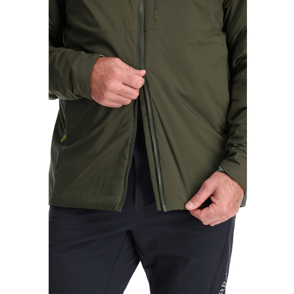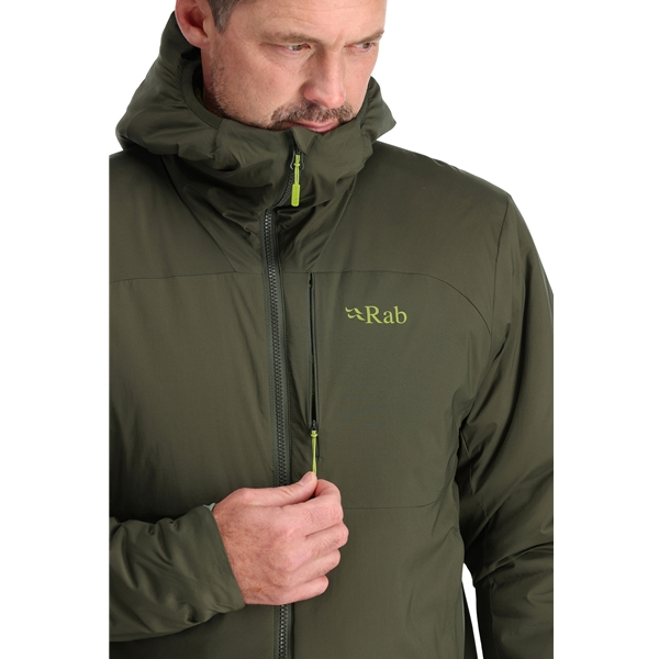 Rab Xenair Alpine Jacket on lämmin, mukautuva ja suojaava synteettisellä vuorauksella varustettu takki, joka on kehitetty vaihteleviin olosuhteisiin tuntureilla. Takki on valmistettu kevyestä ja hengittävästä materiaalista ja siinä on kehoa kartoittava synteettinen eriste, joka säilyttää lämmön ja auttaa lämmönsäätelyssä. Takissa on myös säädettävä, kypärän kanssa yhteensopiva huppu, kaksisuuntainen vetoketju eristeellä ja leukasuojalla, useita vetoketjutaskuja sekä joustava kiila resoreissa antamassa optimaalisen istuvuuden hanskoja käytettäessä tai käsivarsia taivutettaessa.