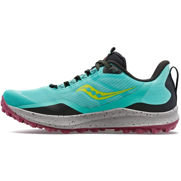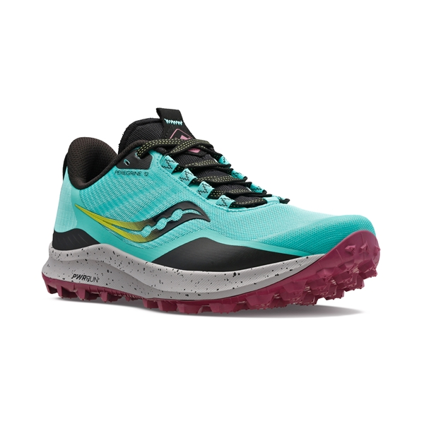Saucony Peregrine 12 Women soveltuvat juoksijalle, joka etsii kevyitä ja monikäyttöisiä naisten polkujuoksukenkiä, päästäkseen sinne minne askeleet vievät. Uusi versio on saanut useita hienoja päivityksiä, kuten lisää mukavuutta, 11 % vähemmän painoa, lisää joustavuutta ja enemmän mukautuvuutta. 4 mm droppi ja syvän kuvioinnin omaava 5 mm PWRTRAC-kumipohja tarjoaa erinomaisen maakosketuksen, pidon ja juoksutuntuman alustasta riippumatta. Ulkopohjan sisäpuolella on integroitu ROCK PLATE -hiilikuitukangas, joka jakaa painetta ja suojaa jalkaa teräviltä kiviltä ja juurilta. Kengässä on myös kiinnitysmahdollisuus damaskeille, paremman juoksukokemuksen saamiseksi maastossa, myös polkujen ulkopuolella. Erittäin hyvin iskuja vaimentavan PWRRUN-välipohjan ja uuden PWRRUN+-pohjallisen sekä hyvän joustavuuden ansiosta Peregrine 12 soveltuu myös soralla ja asfaltilla juoksemiseen. Ainutlaatuinen, polkujuoksuun sovitettu FORMFIT-istuvuus luo optimaalisen räätälöidyn istuvuuden koko jalan ympärille. Välipohjan anatomisesti muotoiltu yläosa ympäröi jalan tarjoten parempaa tukea kantapään ja jalan kaaren ympärille. Päällinen ympäröi jalkaa mukavasti ja vakaasti välipohjan korkean reunan ja muokattavan, saumattoman ja hyvän hengittävyyden omaavan verkkomateriaalin, sekä siihen yhdistetyn, jalkapöydän ympärillä olevan, vakauttavan 3D-rakenteen ansiosta. Lisäksi päällinen koostuu kierrätettävästä materiaalista, ekologisen jalanjäljen pienentämiseksi.