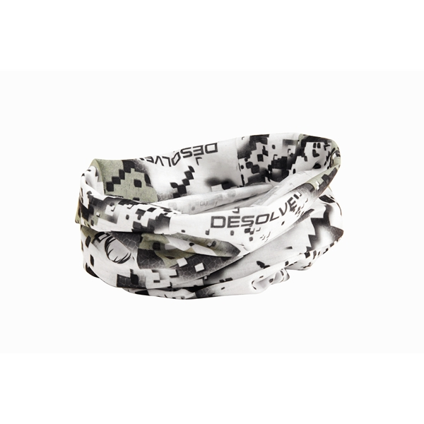 Voidaan käyttää myös päähineenä tai maskina. Valmistettu ainutlaatuisesta naamiokuvioidusta DESOLVE®-kankaasta.
